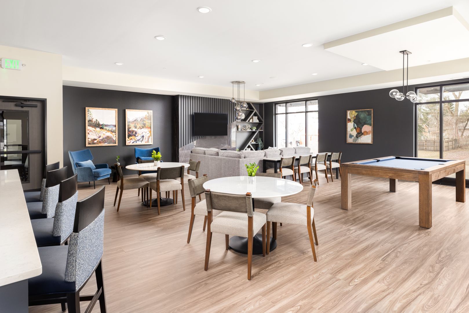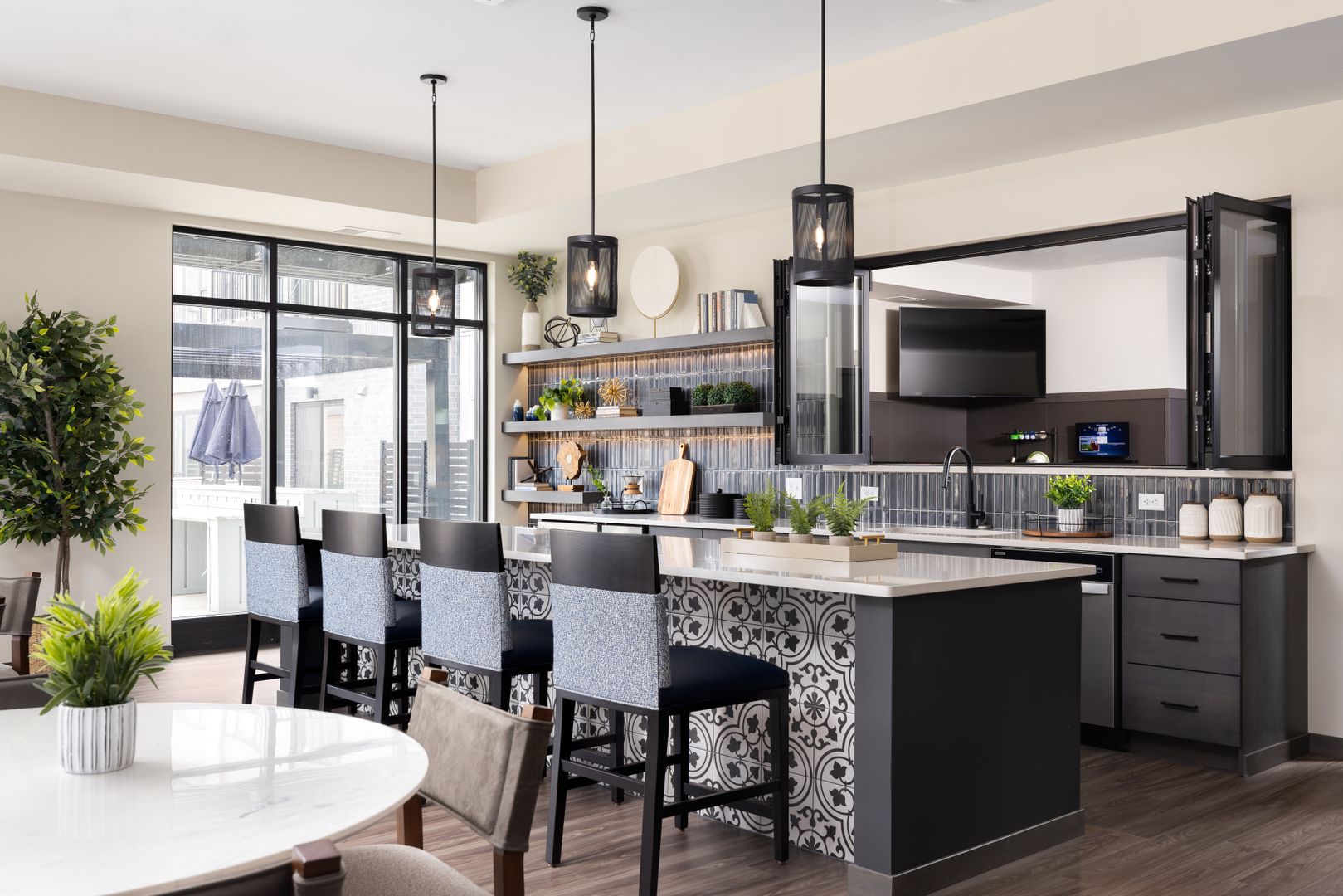 Relax, recharge and entertain in Noble's signature collection of amenities, like a sky lounge and rooftop deck, sports simulator, clubroom with full kitchen, fitness and yoga studio, and business lounge with work stations.