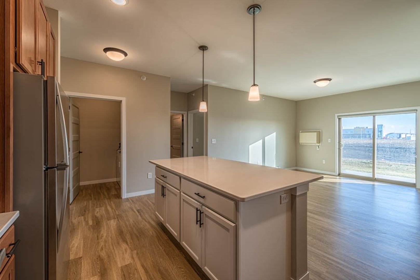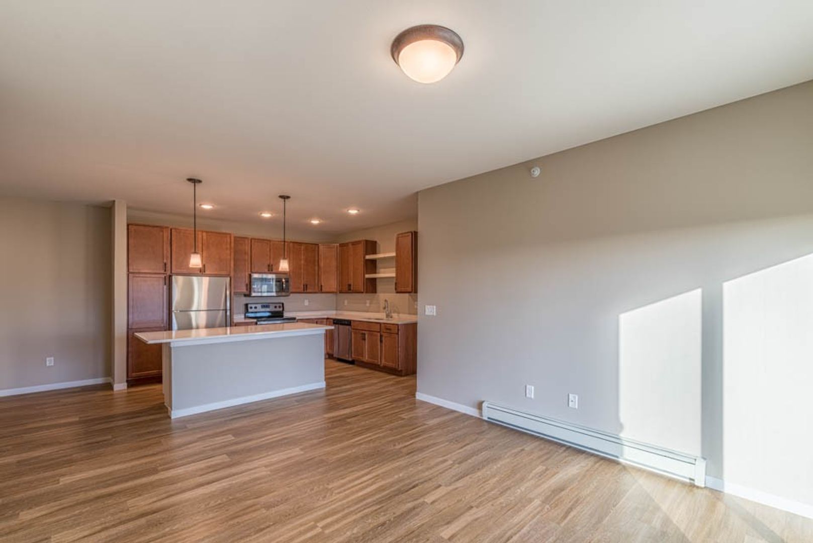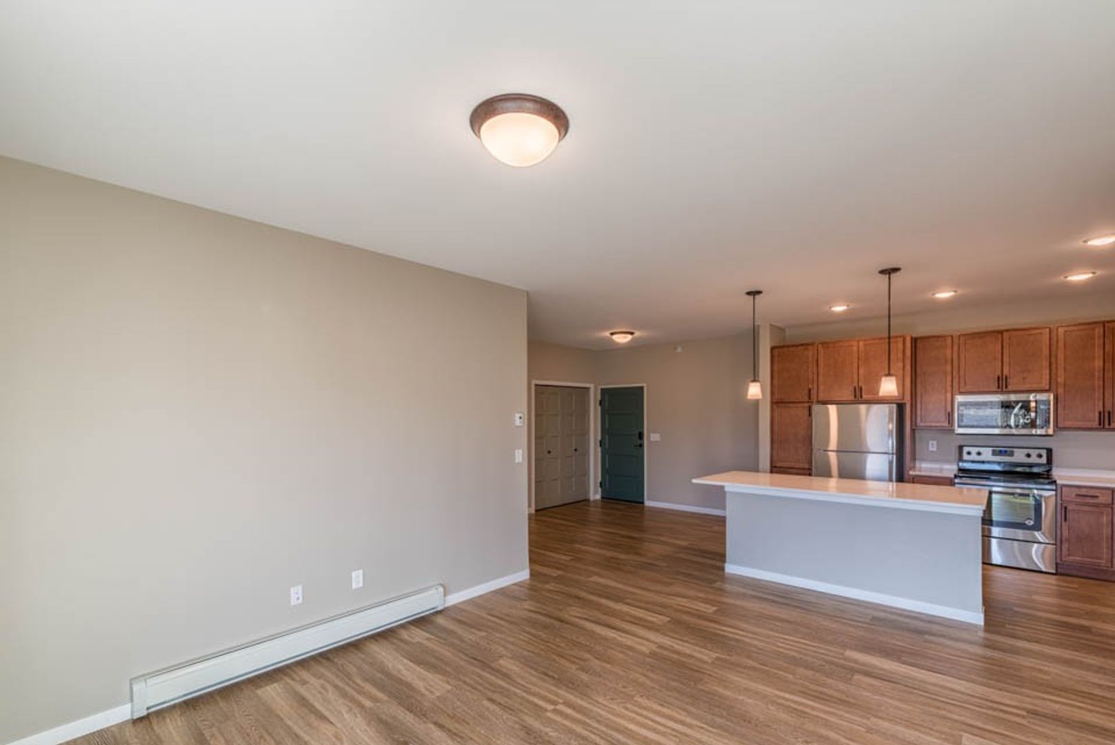 Each unit features pendant lighting, quartz countertops, stainless steel appliances, wood-inspired flooring and an in-home washer and dryer. You'll love the modern, hand-picked finishes. Plus, we're pet-friendly!