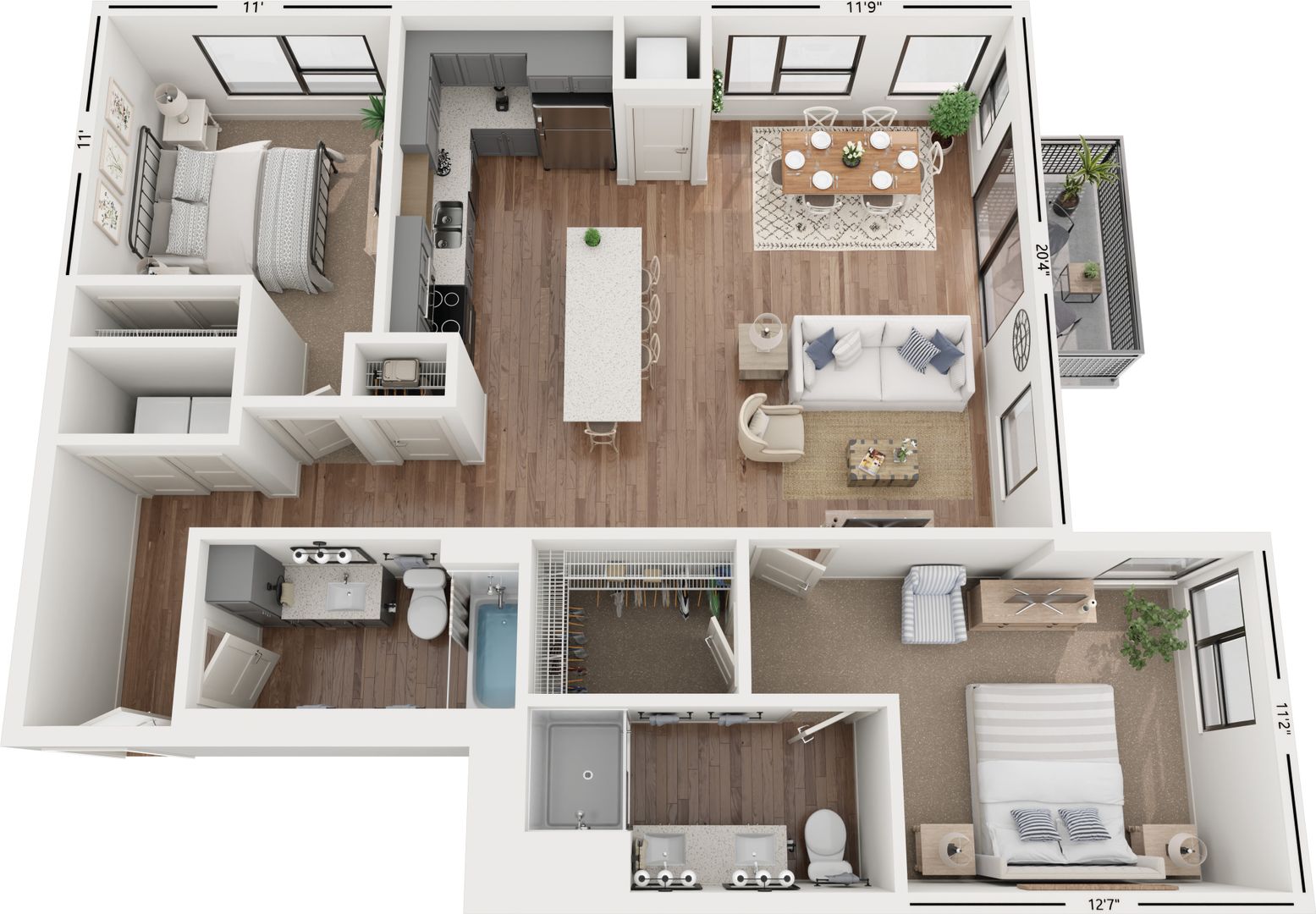Lynvue's alcove, studio, 1, 2, and 3-bedroom floor plans were expertly designed to maximize space. Each apartment home is filled with natural light, open-concept contemporary kitchens and in-home washer and dryer. Upgraded hand-picked finishes include-wood inspired flooring, tile backsplash, and quartz countertops that create an upgraded living experience.