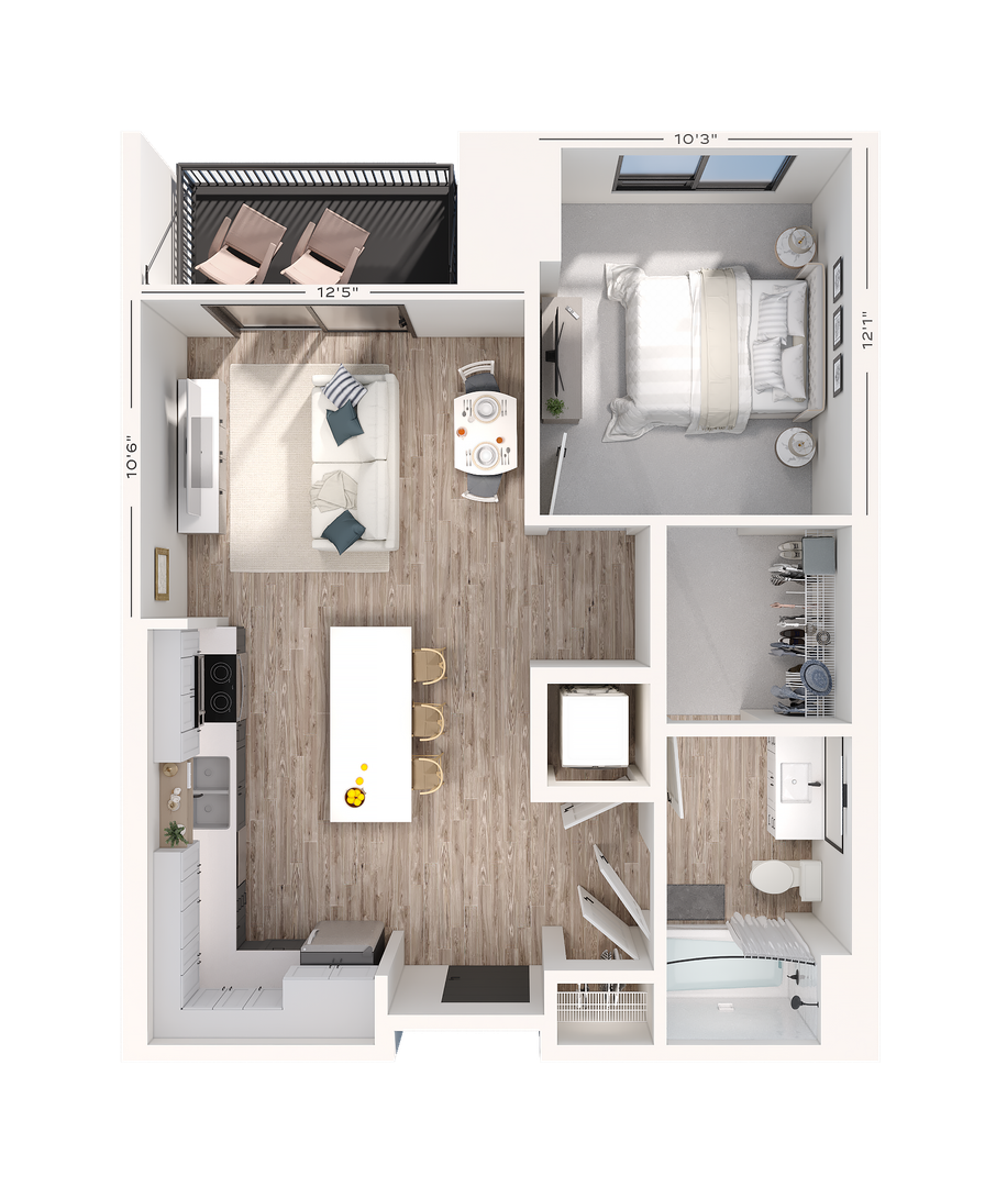 Each apartment home is filled with natural light, featuring open-concept contemporary kitchens and an in-home washer and dryer. Upgraded hand-picked finishes include wood-inspired flooring, tile backsplash, and quartz countertops that create an upgraded living experience.