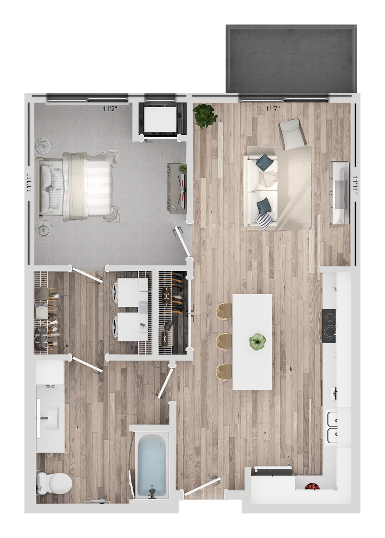 Each apartment home is filled with natural light, featuring open-concept contemporary kitchens and an in-home washer and dryer. Upgraded hand-picked finishes include wood-inspired flooring, tile backsplash, and quartz countertops that create an upgraded living experience.