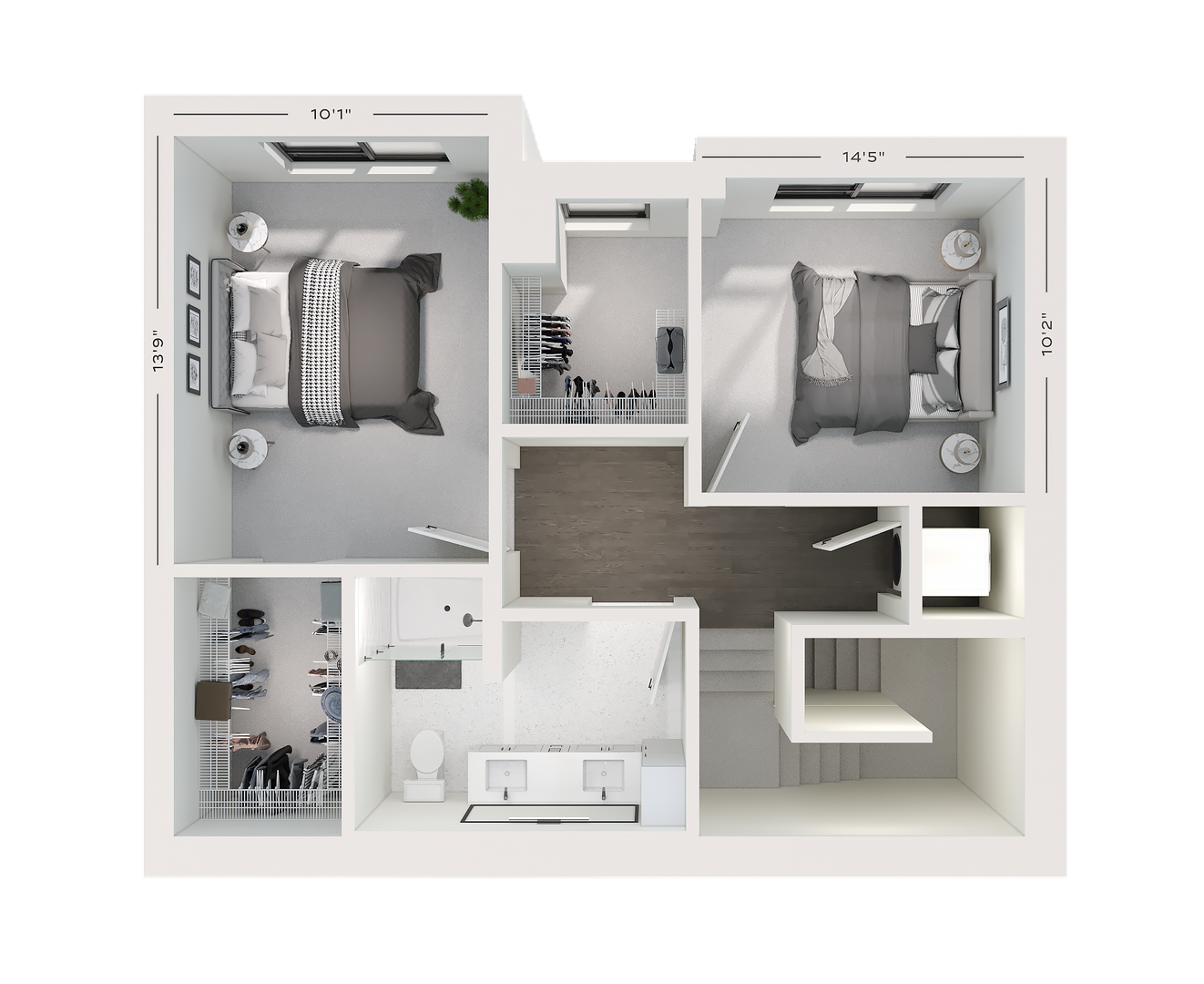 Unwind in sophisticated spaces and enjoy resort-class amenities like a fitness & yoga studio, three rooftop decks, EV charging stations, a complimentary coffee station and 24/7 mini market. First & Banks' studio, 1, 2, and 3-bedroom floor plans were expertly designed to maximize space and create unique layouts, including premier two-story walkout units.