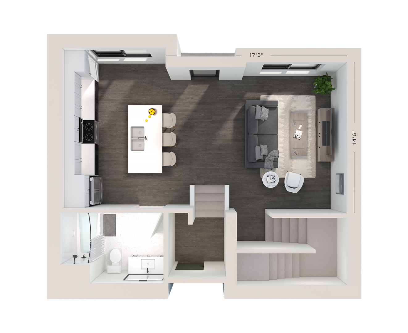 Each apartment home is filled with natural light, featuring open-concept contemporary kitchens and an in-home washer and dryer. Upgraded hand-picked finishes include wood-inspired flooring, tile backsplash, and quartz countertops that create an upgraded living experience.