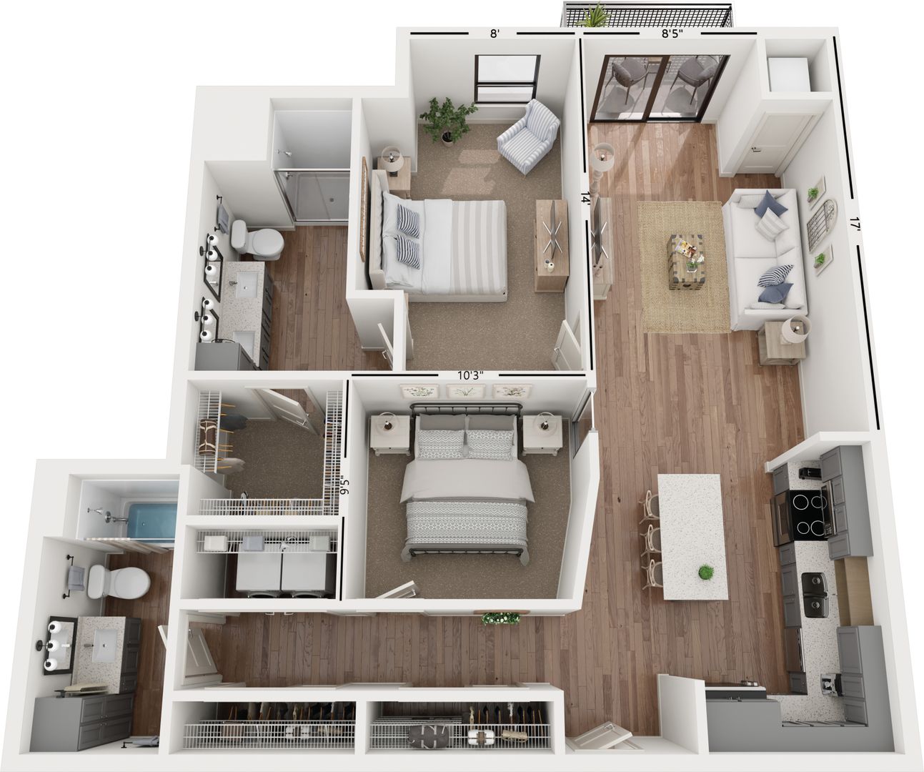 Lynvue's alcove, studio, 1, 2, and 3-bedroom floor plans were expertly designed to maximize space. Each apartment home is filled with natural light, open-concept contemporary kitchens and in-home washer and dryer. Upgraded hand-picked finishes include-wood inspired flooring, tile backsplash, and quartz countertops that create an upgraded living experience.