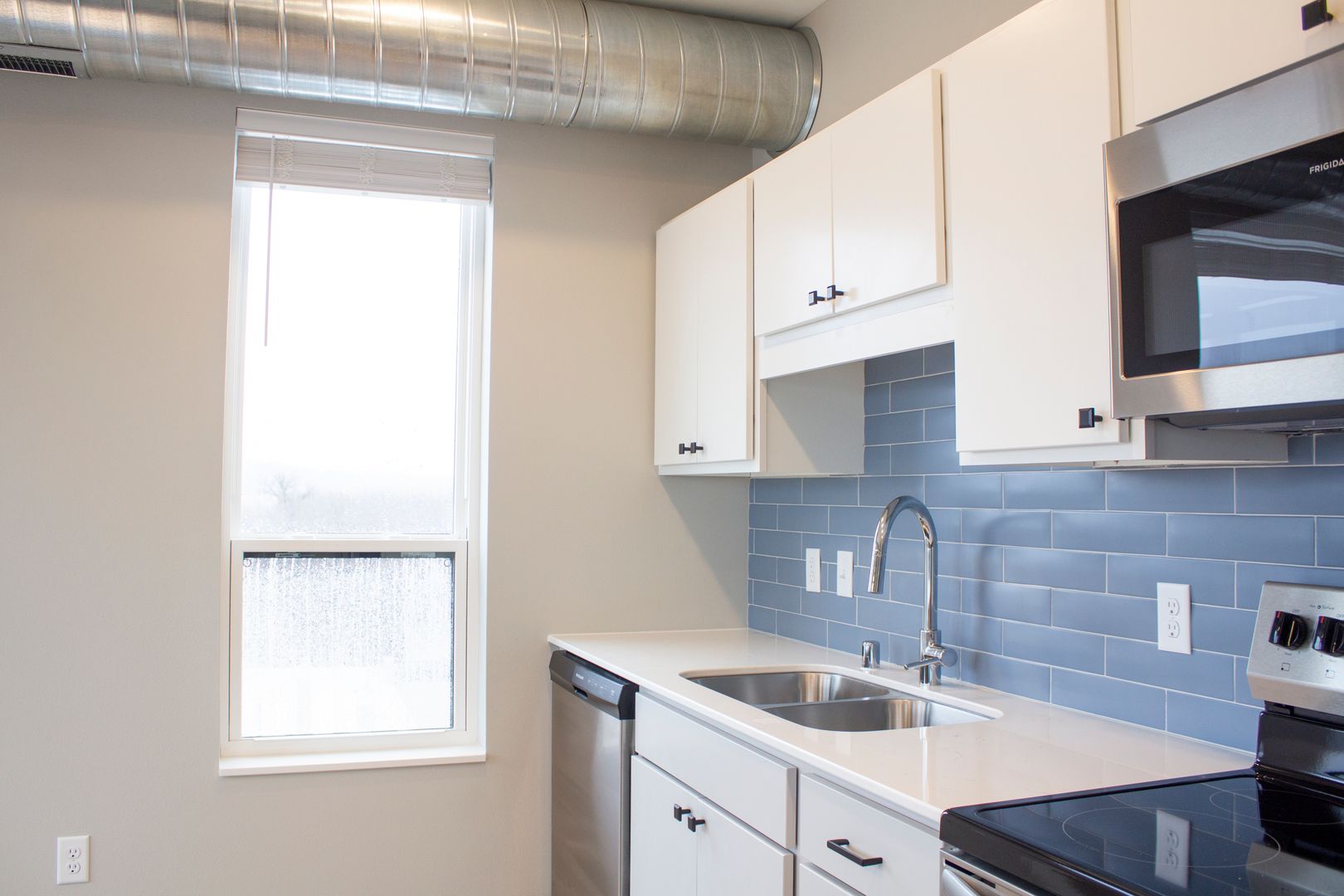 The DECO's alcoves, one-, and two-bedroom units are artfully designed with hand-picked finishes. The two-tone cabinets, quartz countertops, stainless steel appliances, and island with pendant lighting elevate each unique floor plan. You will also love the nine-foot ceilings, ample storage space and private balconies.