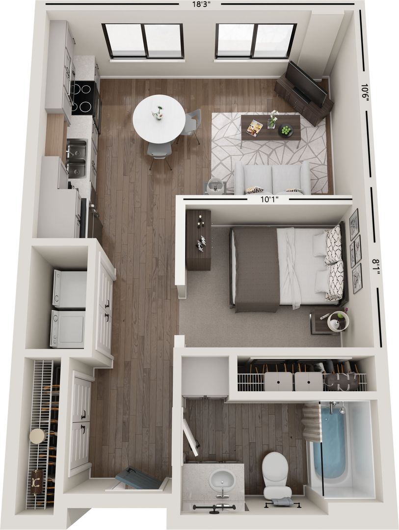 Compass features studio, one, two and three-bedroom apartment homes with in-home washer and dryers, quartz countertops, tile backsplash and contemporary finishes that create an upgraded lifestyle.