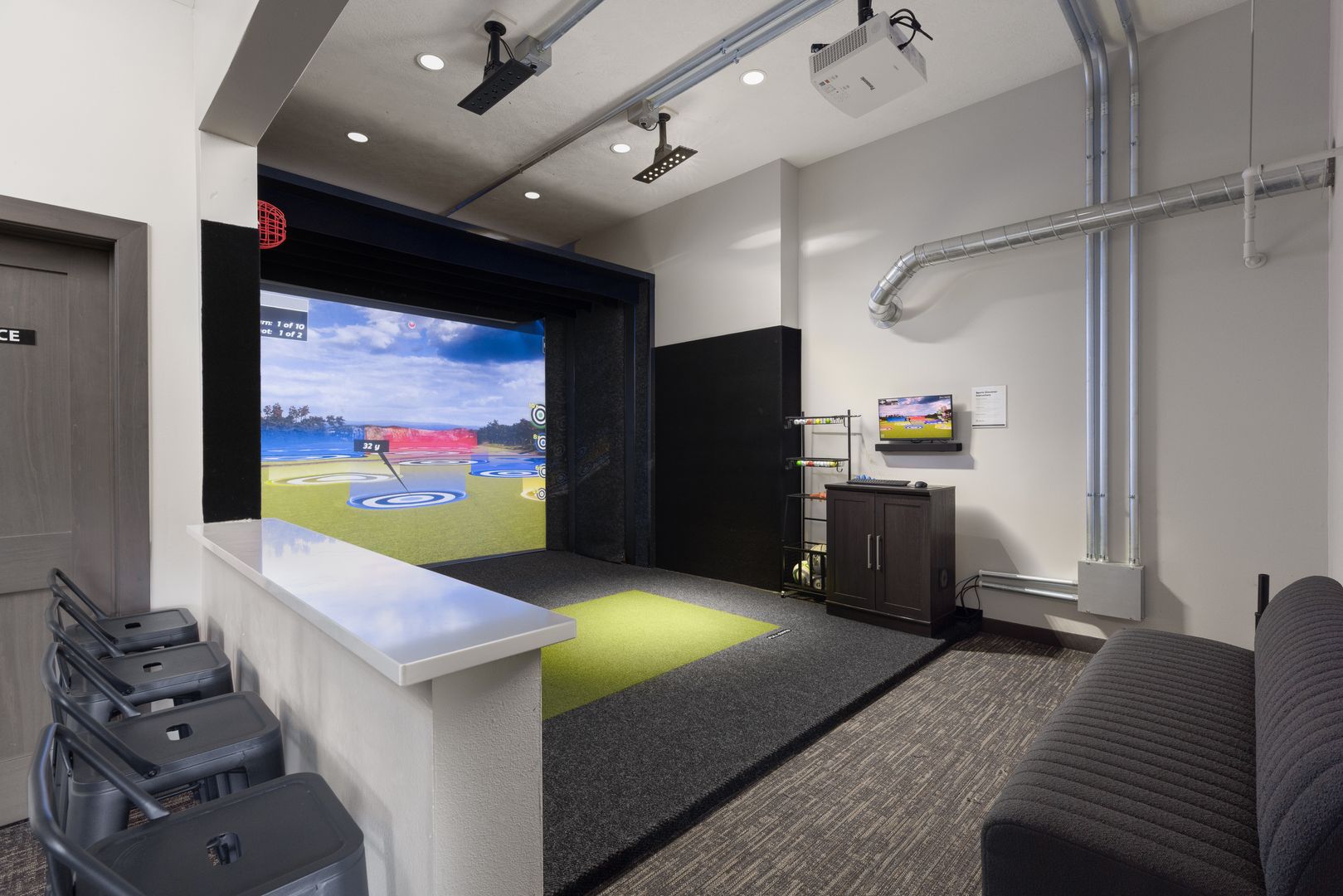 On-site conveniences include a fitness studio, outdoor pool, clubroom, sports simulator, enclosed parking, on-site rental office and more.
