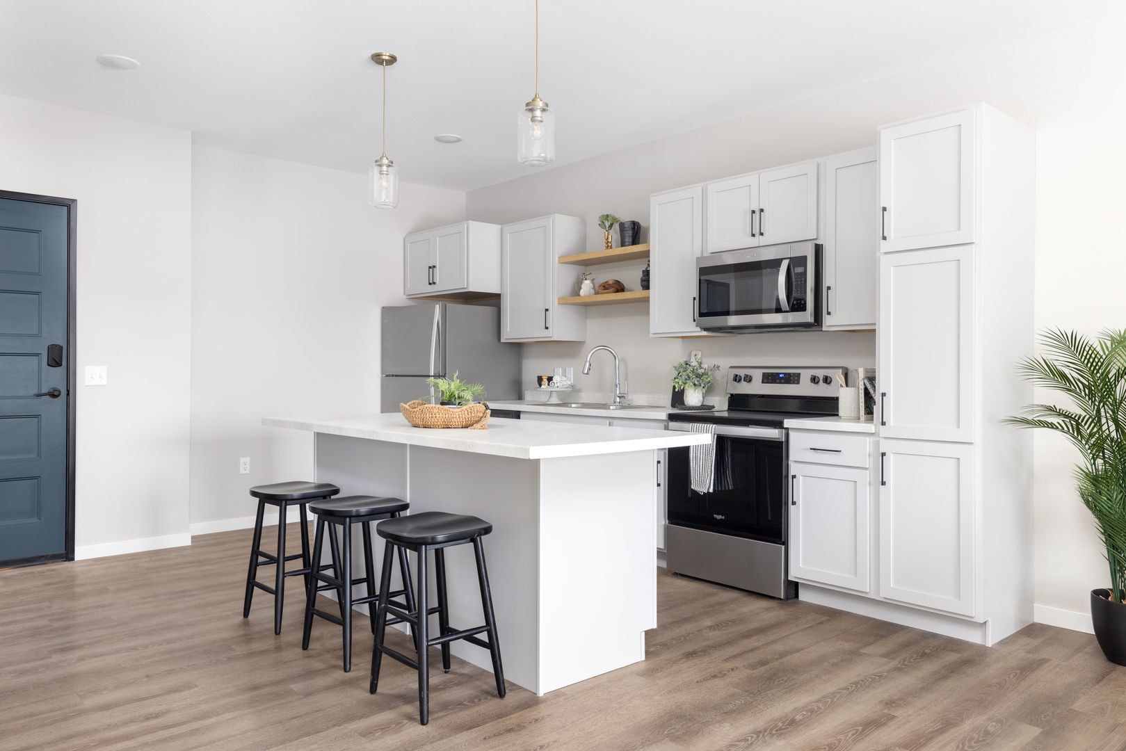 Compass features studio, one, two and three-bedroom apartment homes with in-home washer and dryers, quartz countertops, tile backsplash and contemporary finishes that create an upgraded lifestyle.