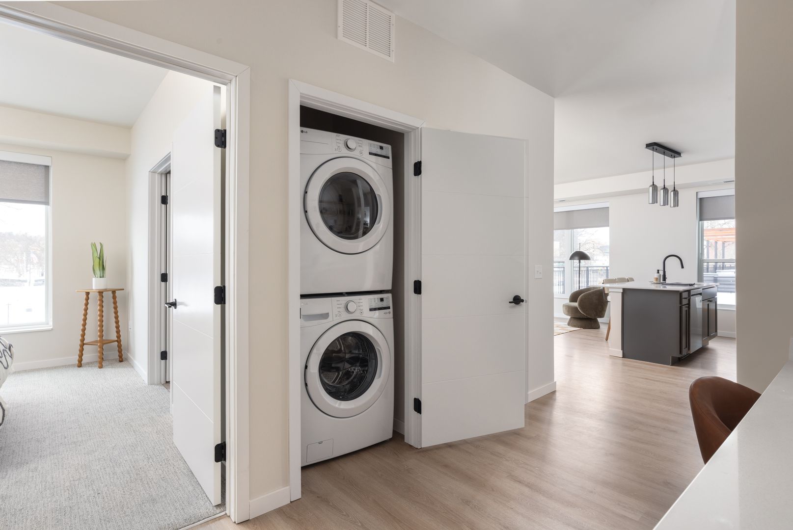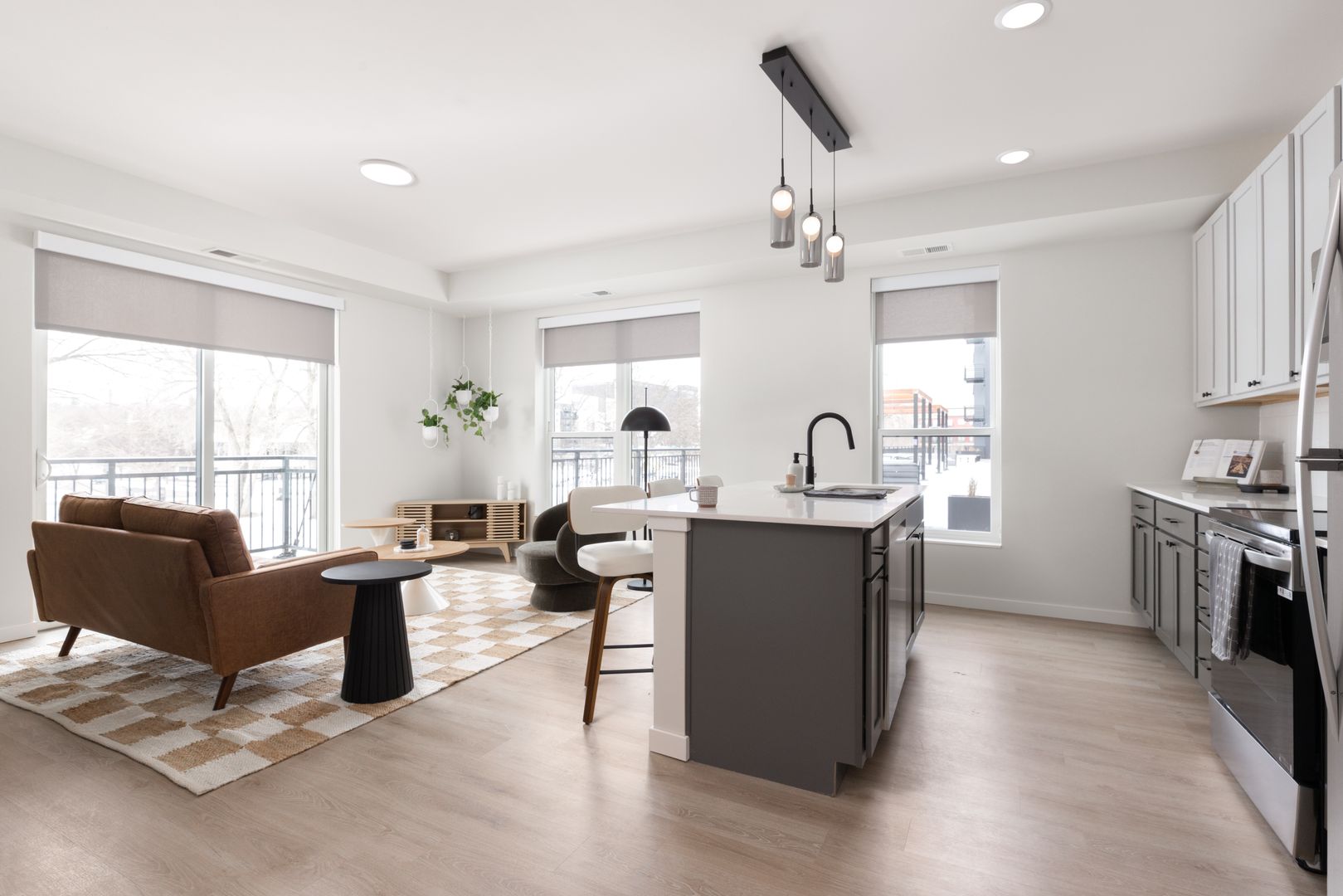 Each apartment home is filled with natural light, featuring open-concept contemporary kitchens and an in-home washer and dryer. Upgraded hand-picked finishes include wood-inspired flooring, tile backsplash, and quartz countertops that create an upgraded living experience.