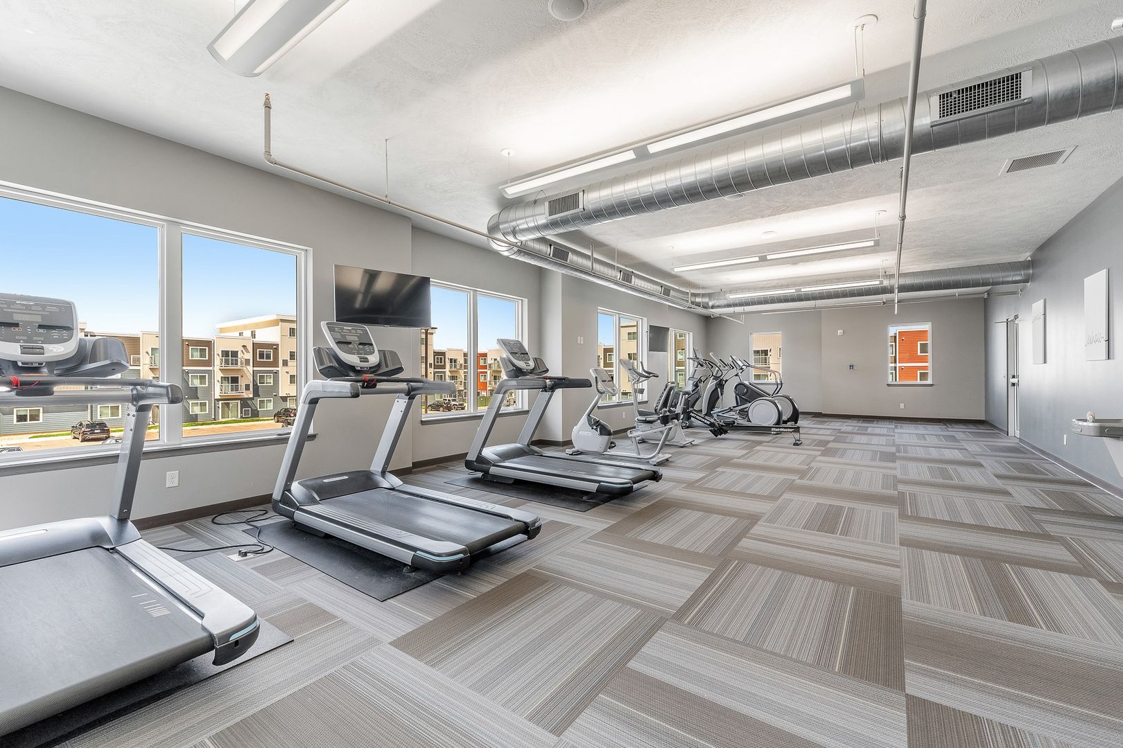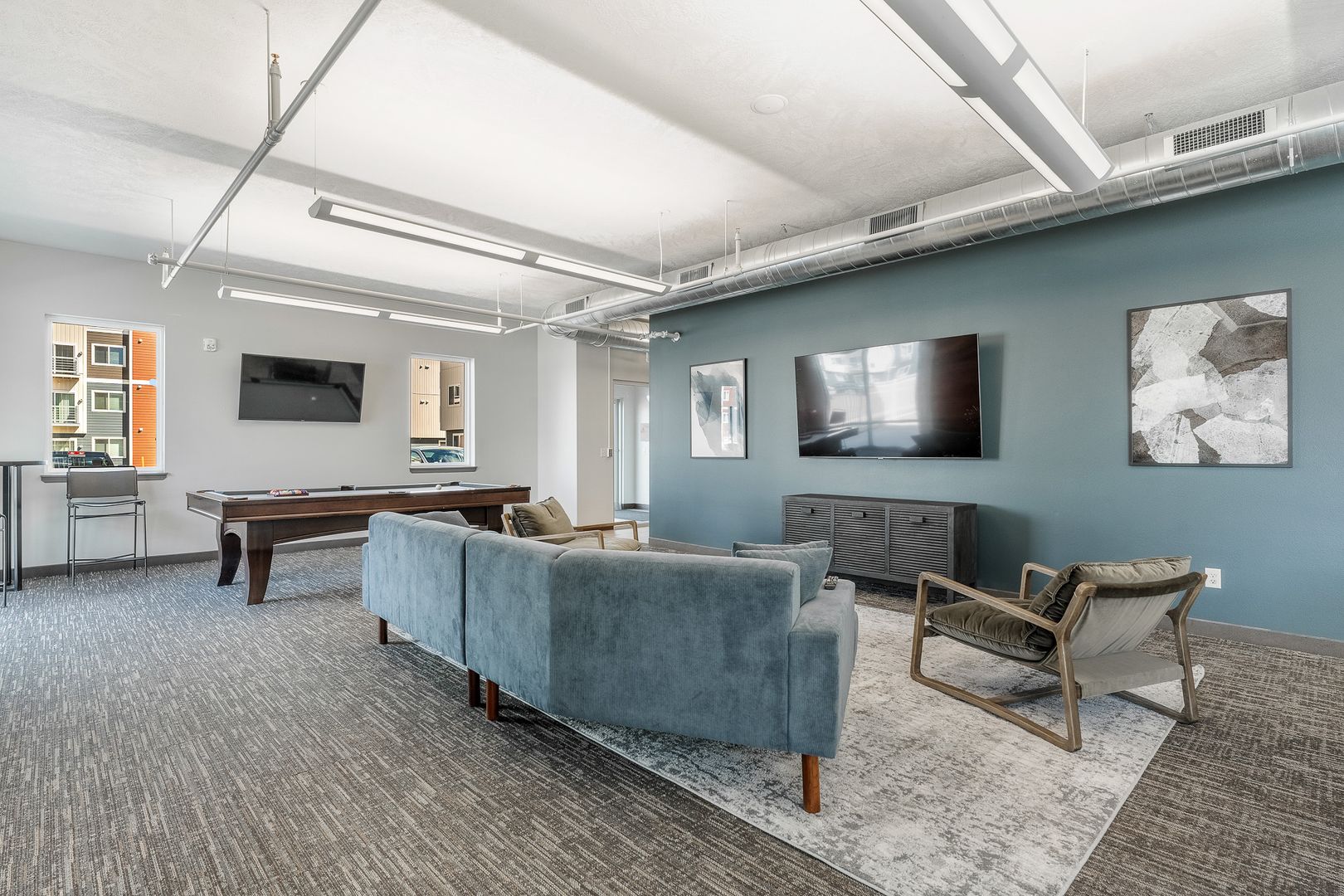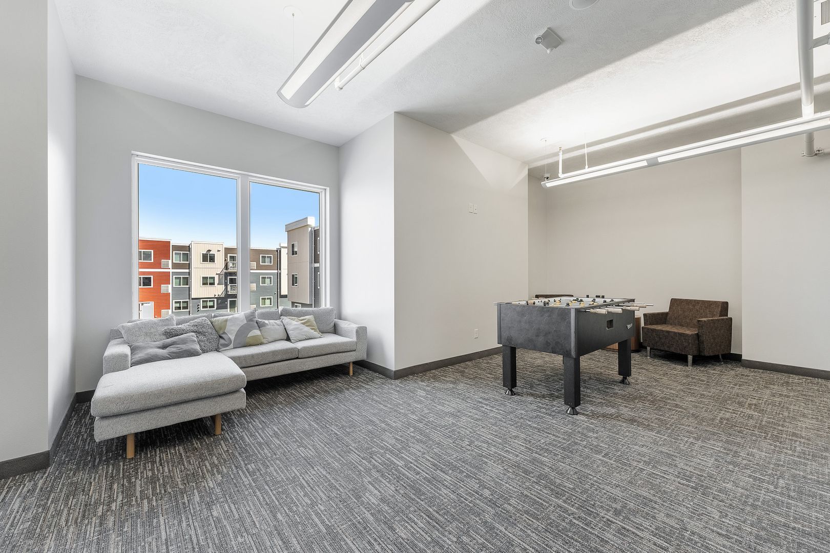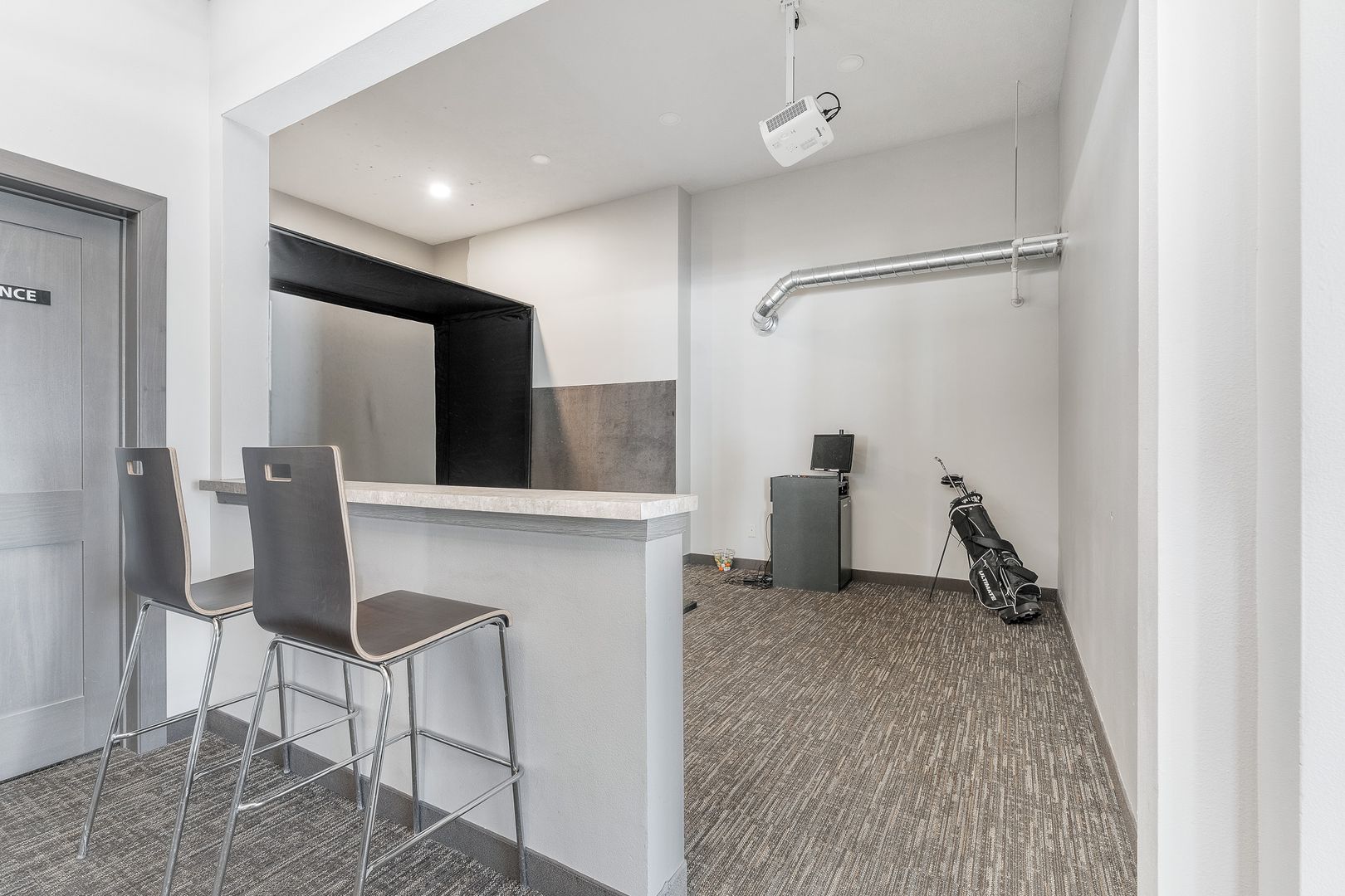 On-site conveniences include a fitness studio, outdoor pool, clubroom, sports simulator, enclosed parking, on-site rental office and more.