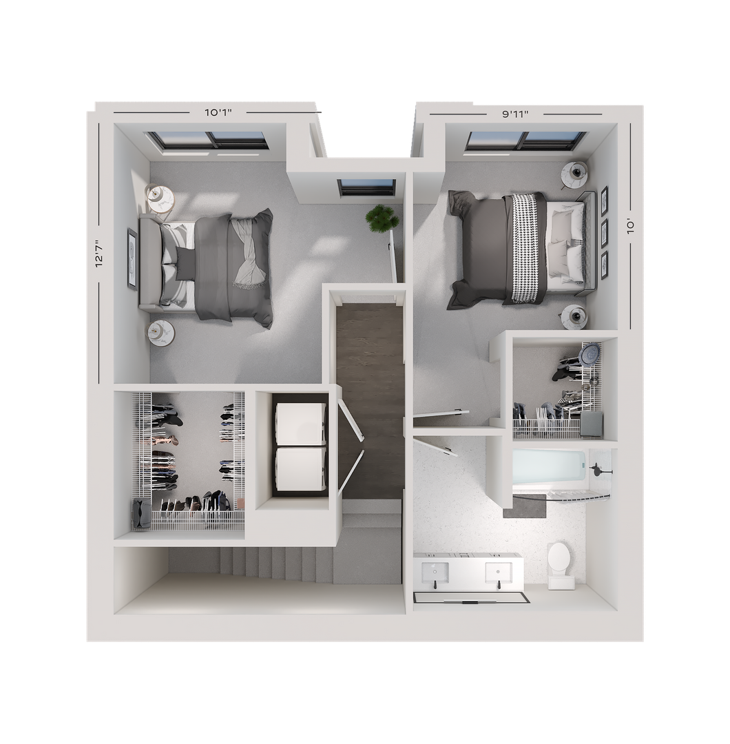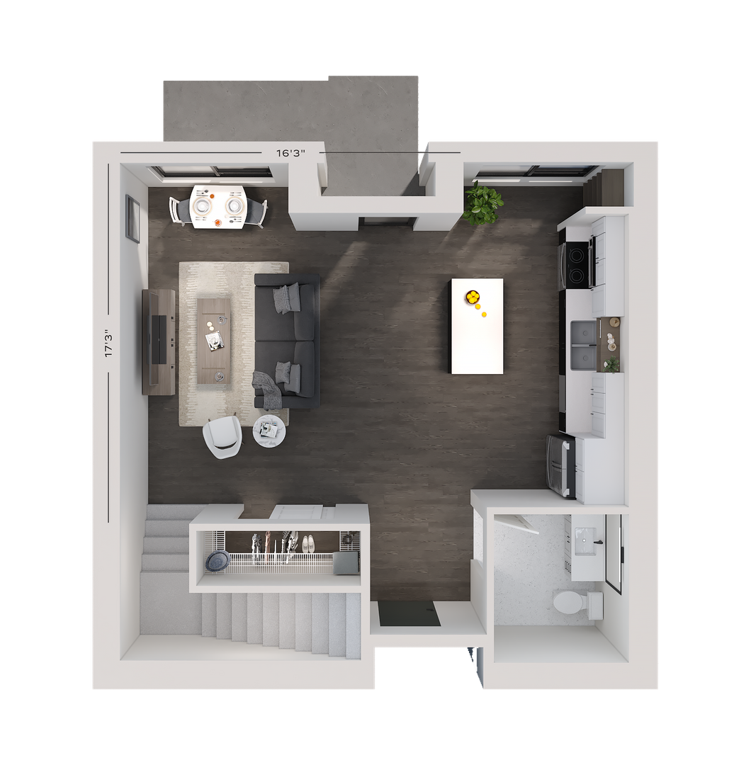 Unwind in sophisticated spaces and enjoy resort-class amenities like a fitness & yoga studio, three rooftop decks, EV charging stations, a complimentary coffee station and 24/7 mini market. First & Banks' studio, 1, 2, and 3-bedroom floor plans were expertly designed to maximize space and create unique layouts, including premier two-story walkout units.