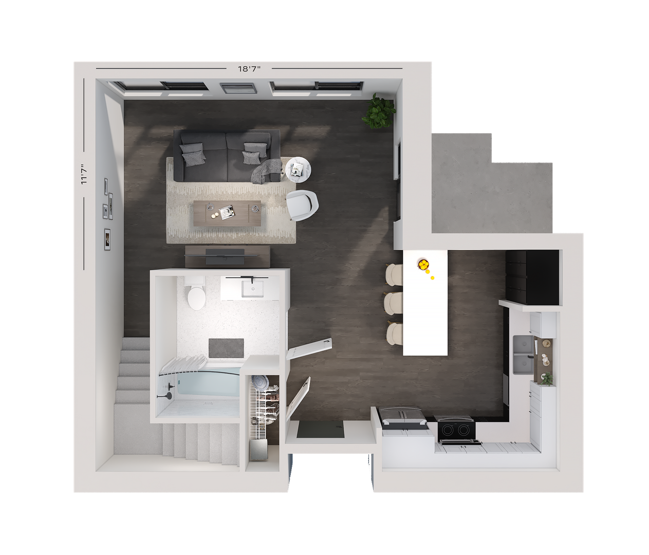 Unwind in sophisticated spaces and enjoy resort-class amenities like a fitness & yoga studio, three rooftop decks, EV charging stations, a complimentary coffee station and 24/7 mini market. First & Banks' studio, 1, 2, and 3-bedroom floor plans were expertly designed to maximize space and create unique layouts, including premier two-story walkout units.