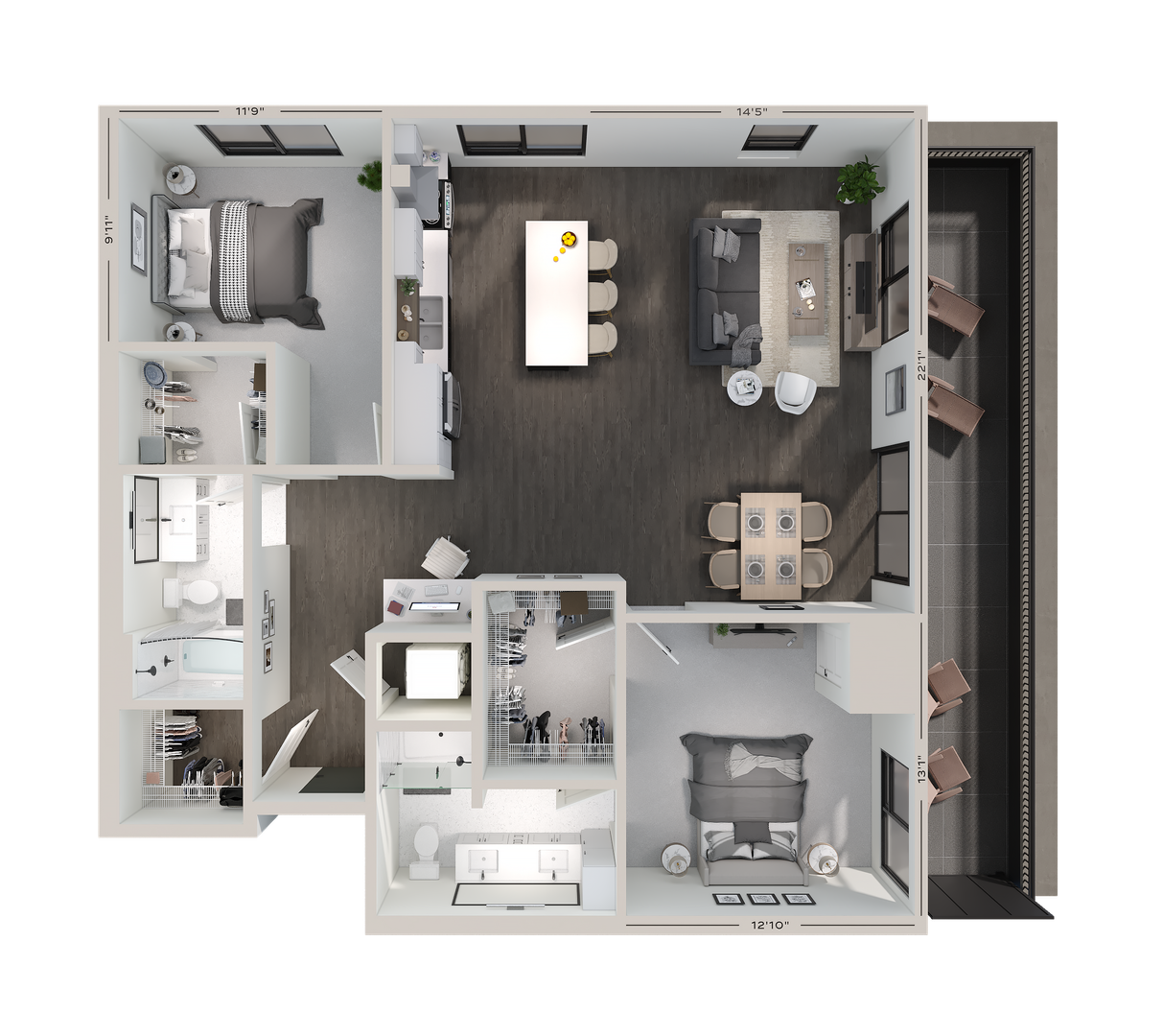 Unwind in sophisticated spaces and enjoy resort-class amenities like a fitness & yoga studio, three rooftop decks, EV charging stations, a complimentary coffee station and 24/7 mini market. First & Banks' studio, 1, 2, and 3-bedroom floor plans were expertly designed to maximize space and create unique layouts, including premier two-story walkout units.
