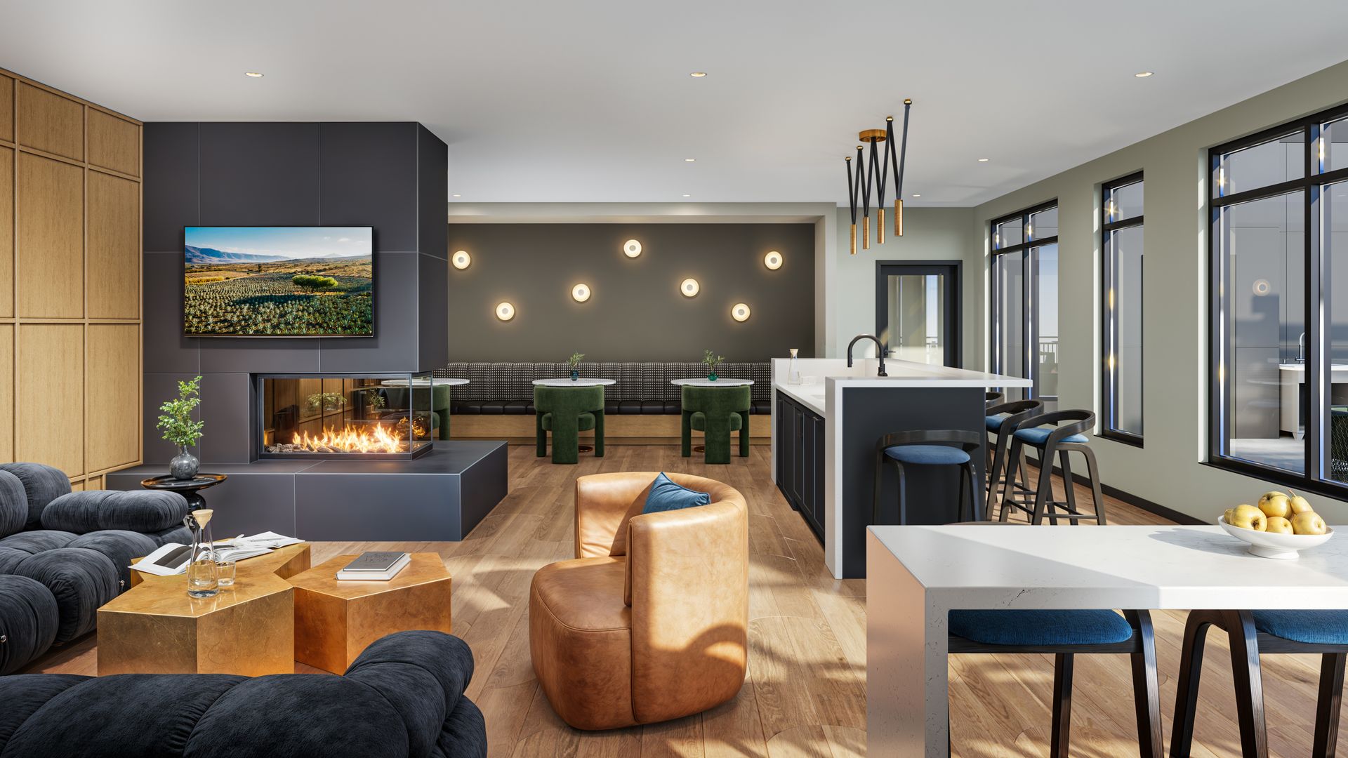 Unwind in sophisticated spaces and enjoy resort-class amenities like a fitness & yoga studio, three rooftop decks, EV charging stations, a complimentary coffee station and 24/7 mini market. First & Banks' studio, 1, 2, and 3-bedroom floor plans were expertly designed to maximize space and create unique layouts, including premier two-story walkout units.
