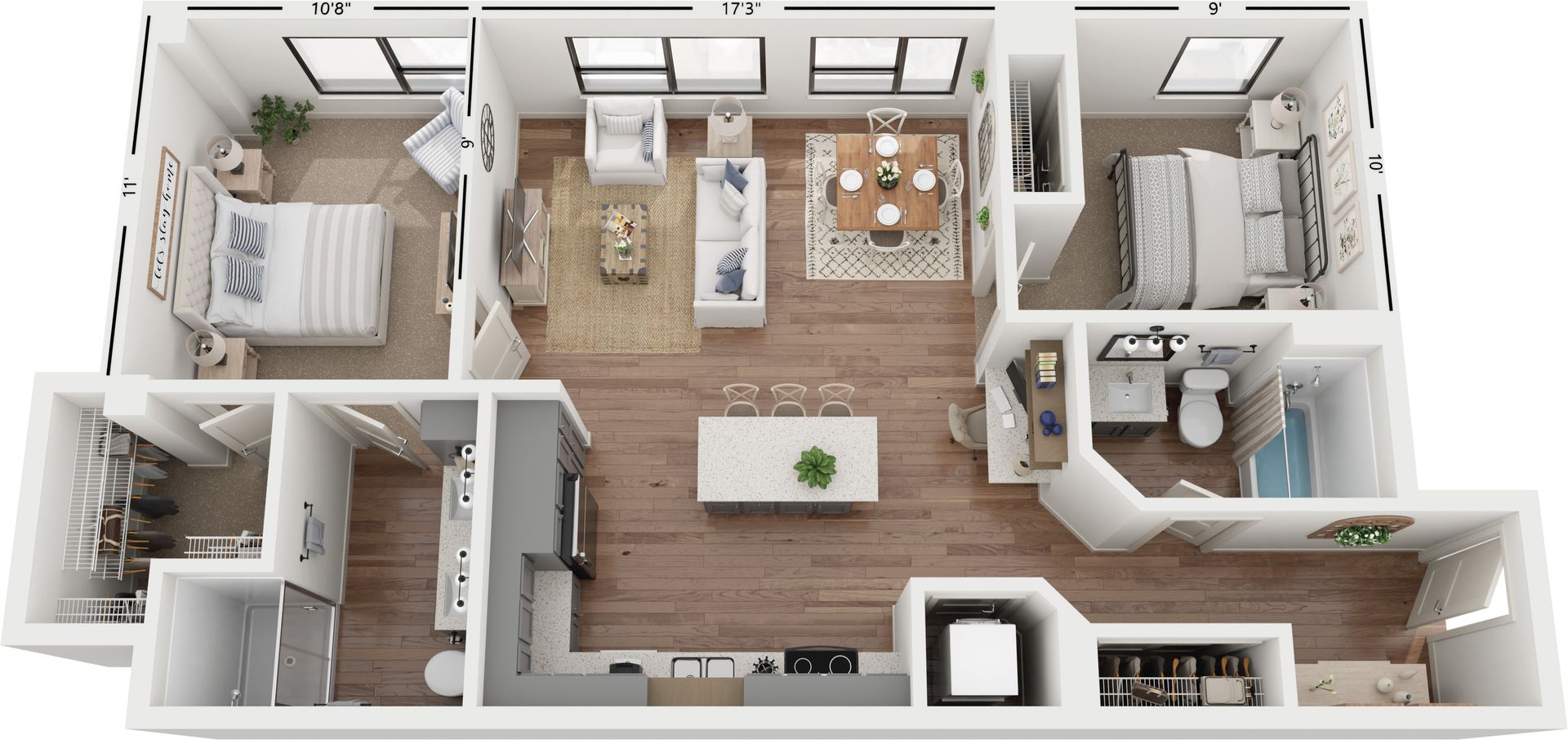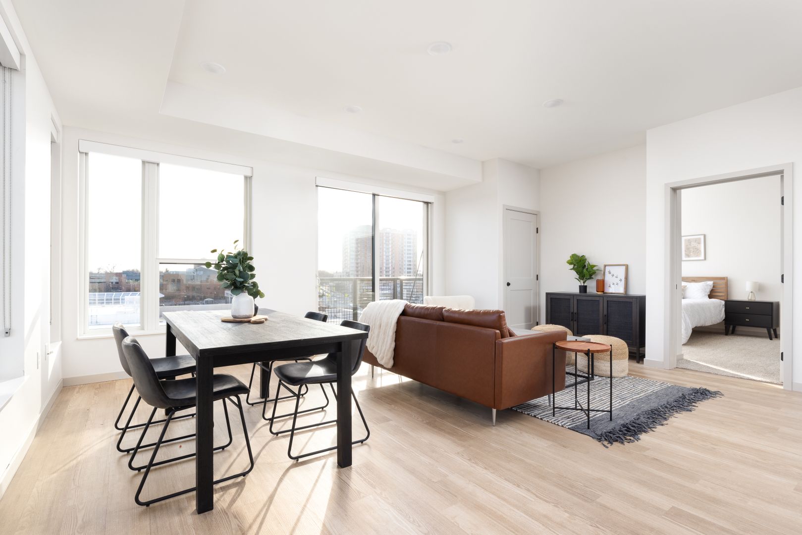 Lynvue's alcove, studio, 1, 2, and 3-bedroom floor plans were expertly designed to maximize space. Each apartment home is filled with natural light, open-concept contemporary kitchens and in-home washer and dryer. Upgraded hand-picked finishes include-wood inspired flooring, tile backsplash, and quartz countertops that create an upgraded living experience.
